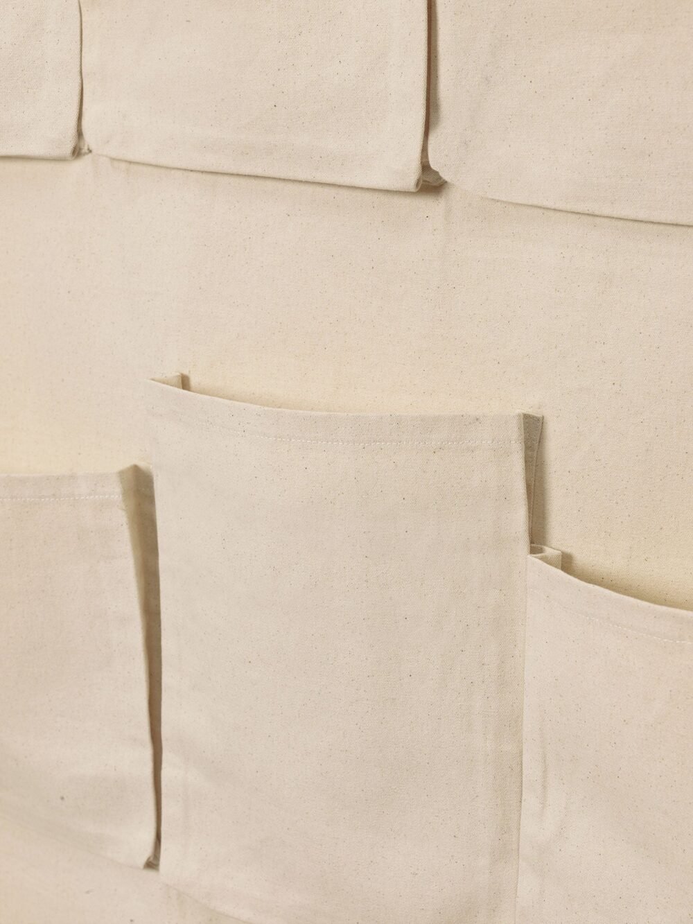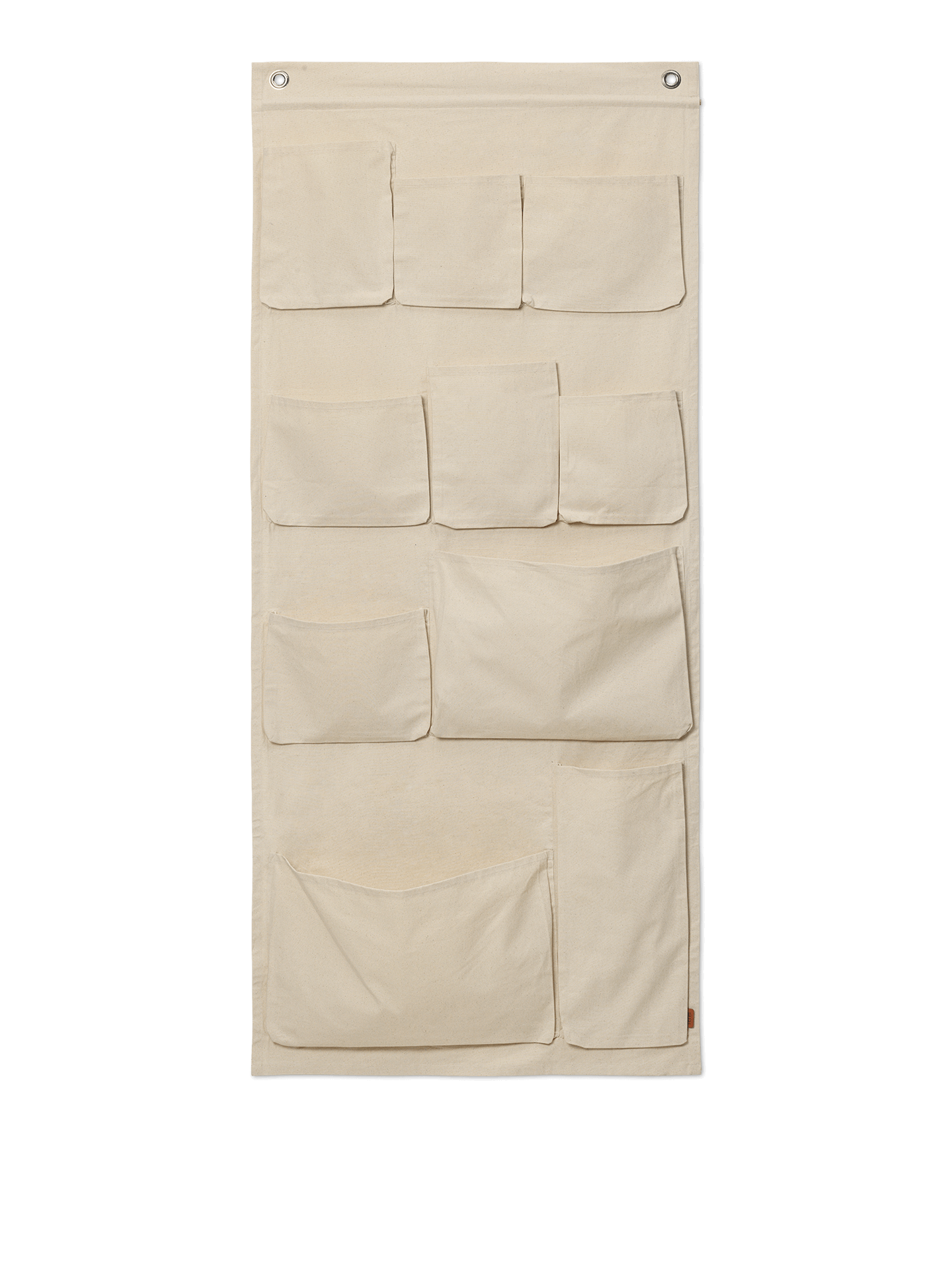 With a simple yet aesthetic expression. the Canvas Wall Pockets present a functional storage solution that can be used in the kid’s room as well as throughout the rest of your home. Made entirely from undyed. organic cotton canvas. this extra large version features oversized dimensions and has ten pockets in different sizes. presenting a durable solution for hiding away clutter. With one eyelet in each top corner. the Canvas Wall Pockets are convenient and simple to mount onto a wall or door. granting you easy acces to its contents.