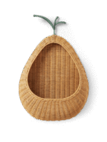 The Pear Braided Wall Pocket is an enchanting storage solution. whimsically shaped like a pear. Meticulously crafted from rattan. a warm and natural material celebrated for its durability and appealing texture. this wall pocket serves as a practical storage solution. It fosters a creative yet organised environment by neatly holding books. toys. or other small items. Adorned with a distinctive ornamental leaf braided in green rattan. it adds a decorative touch. infusing your child’s space with charm and playfulness.