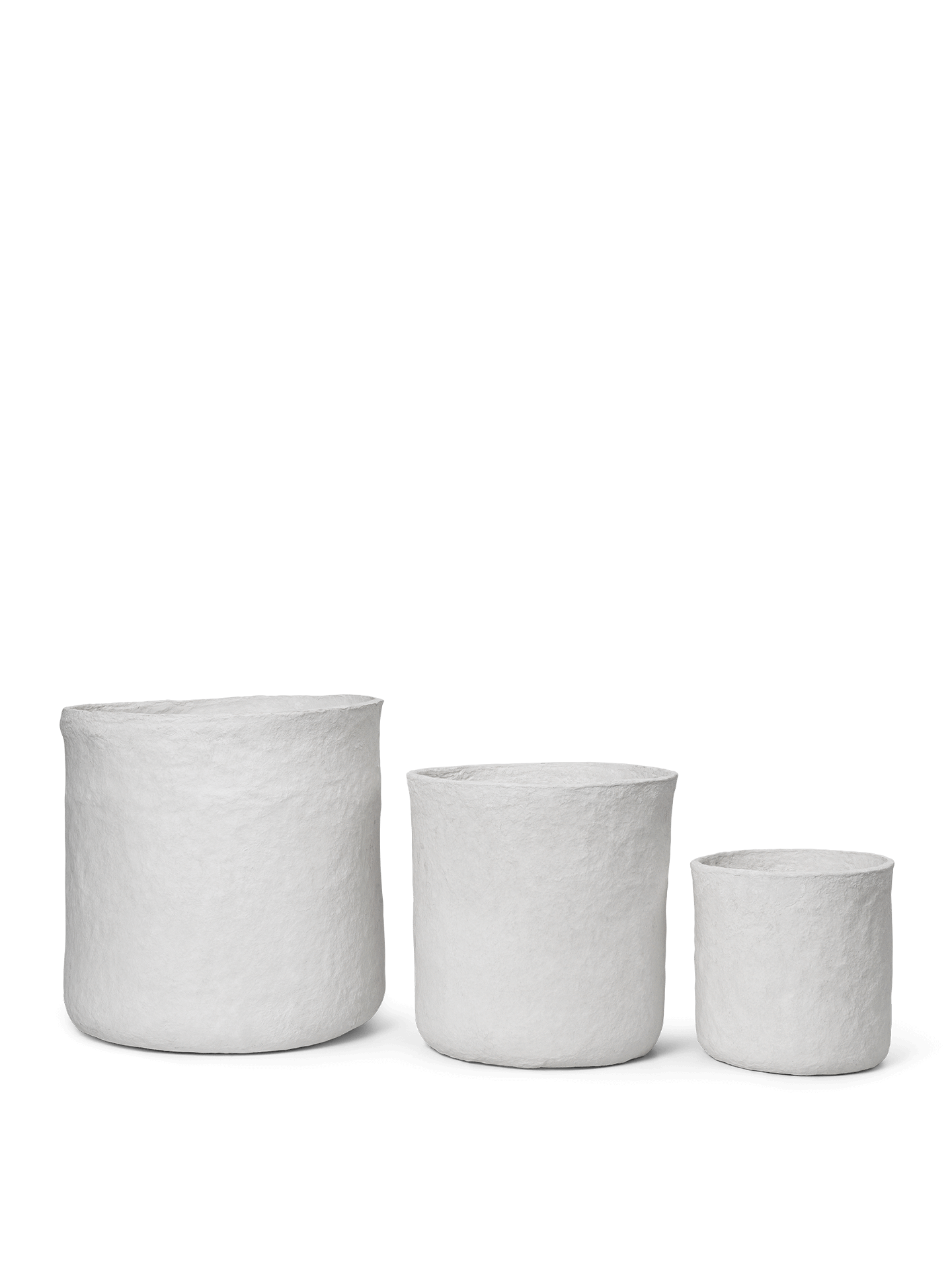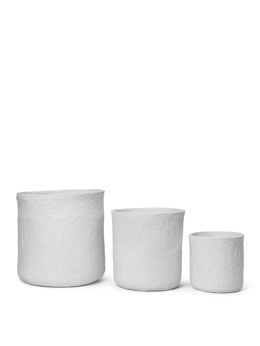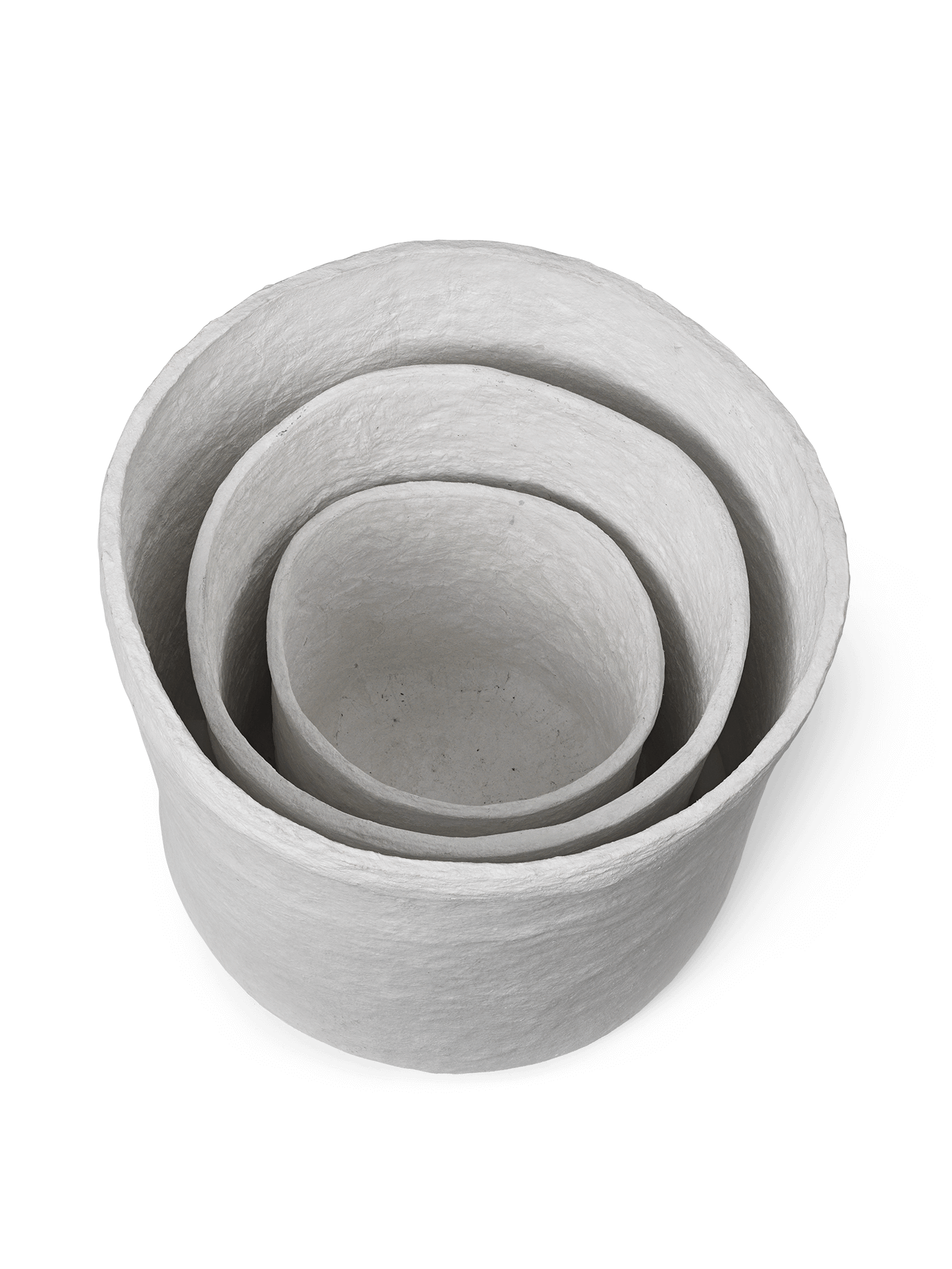 Made from cotton mâché. the Vary Storage presents a versatile storage solution that can be used throughout the home. Cotton mâché. also known as Katra. is an innovative and durable material made from pre-consumer cotton scraps that is suitable for both indoor and outdoor use. Let the Vary Storage serve as functional and decorative storage bins for organising textiles in the living room or toys in the kid’s room. or use them as beautiful pots for your favourite plants in your outdoor space.