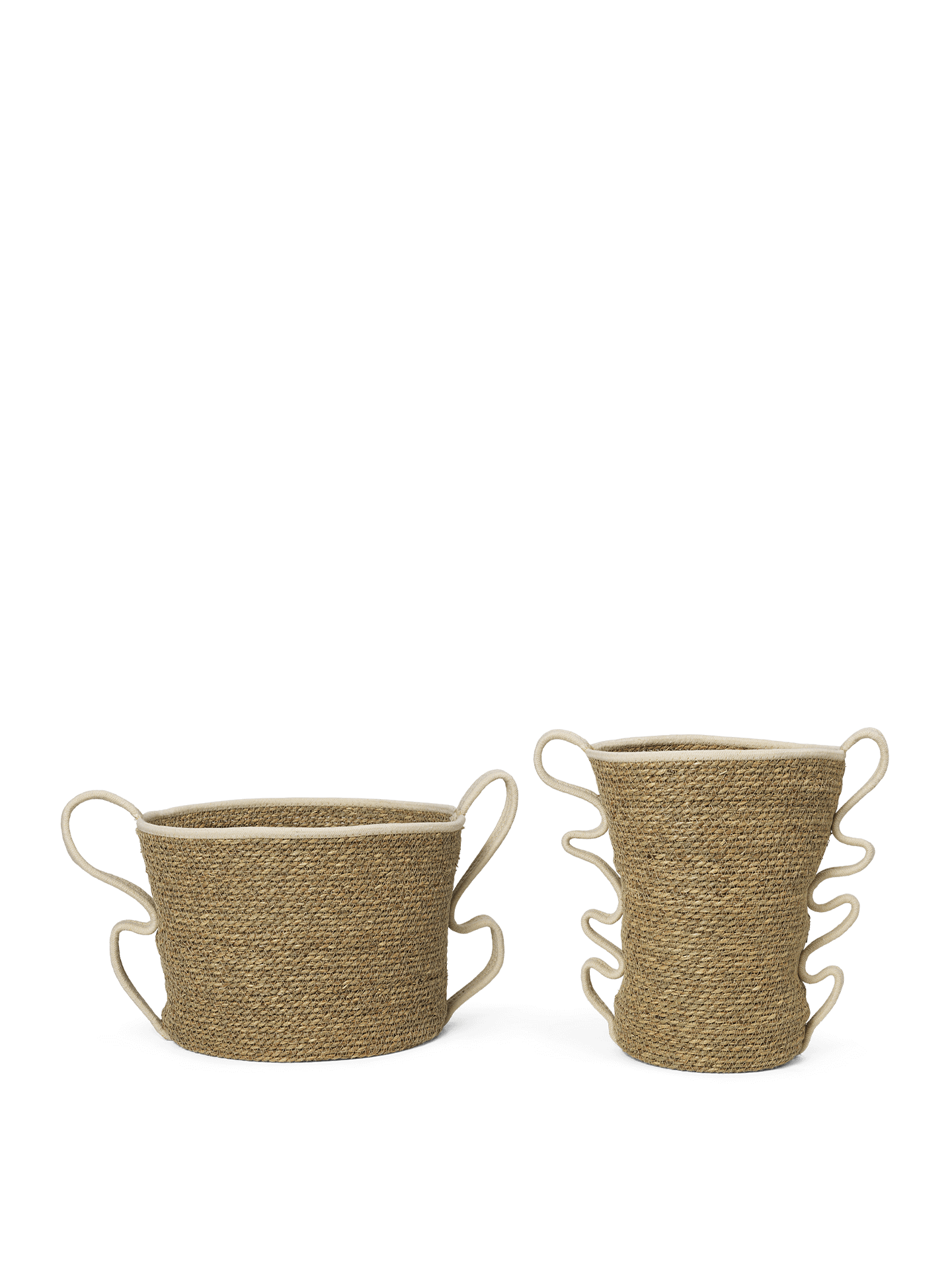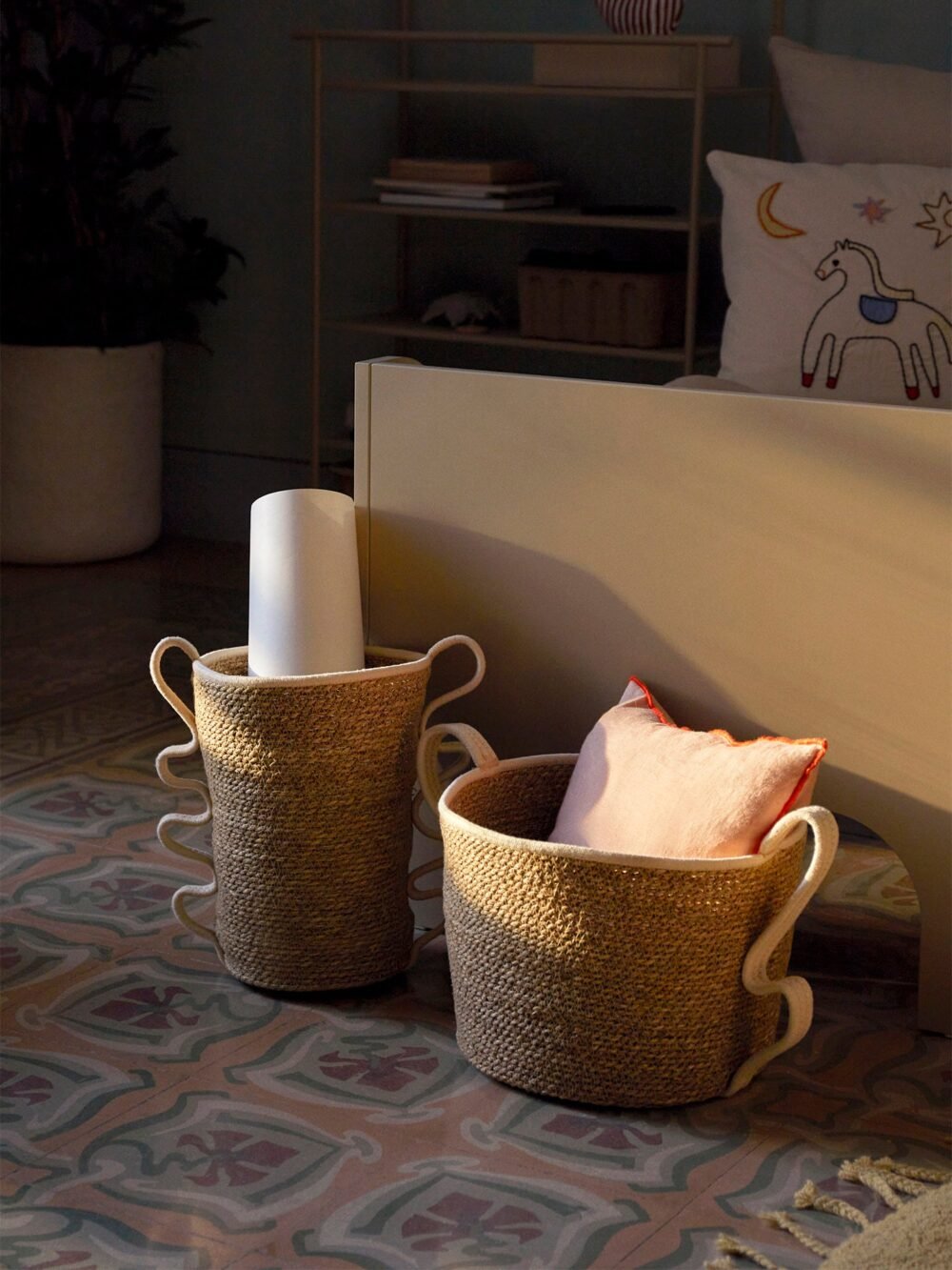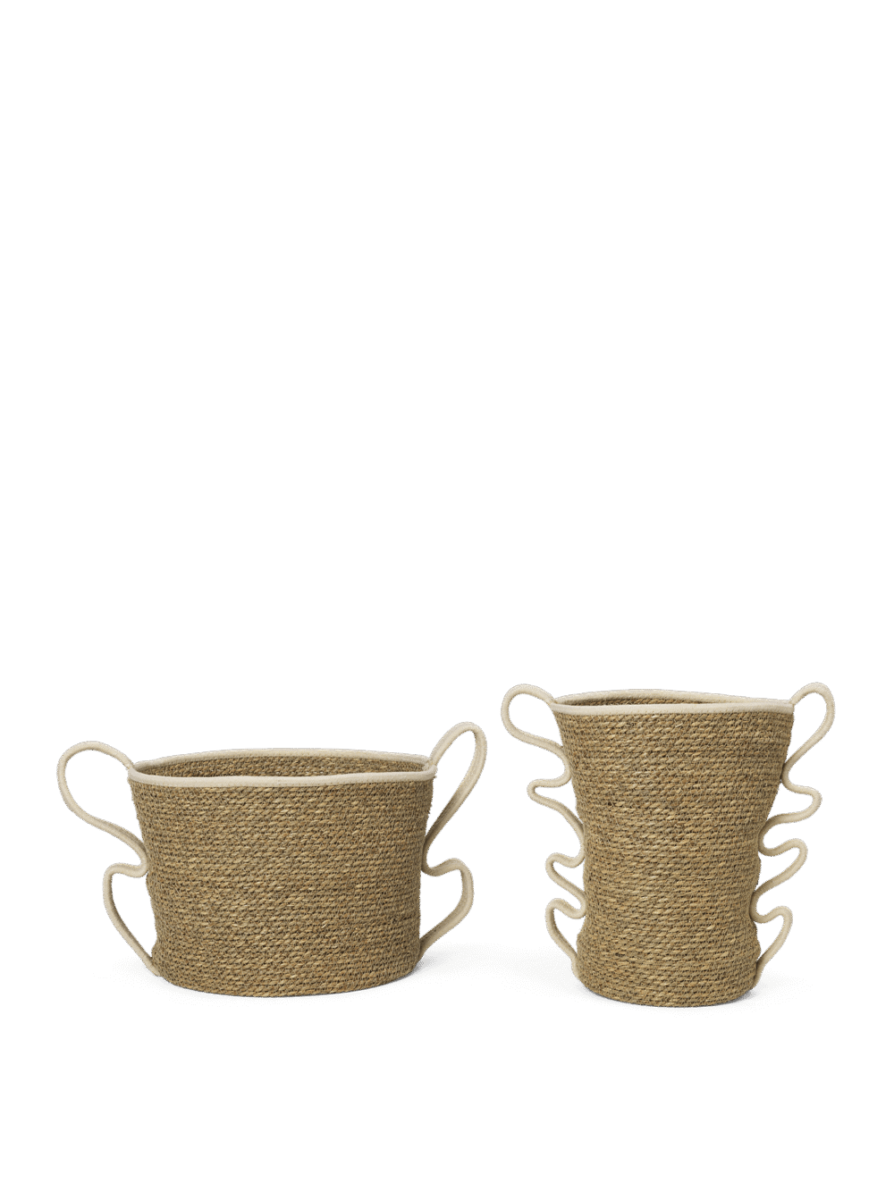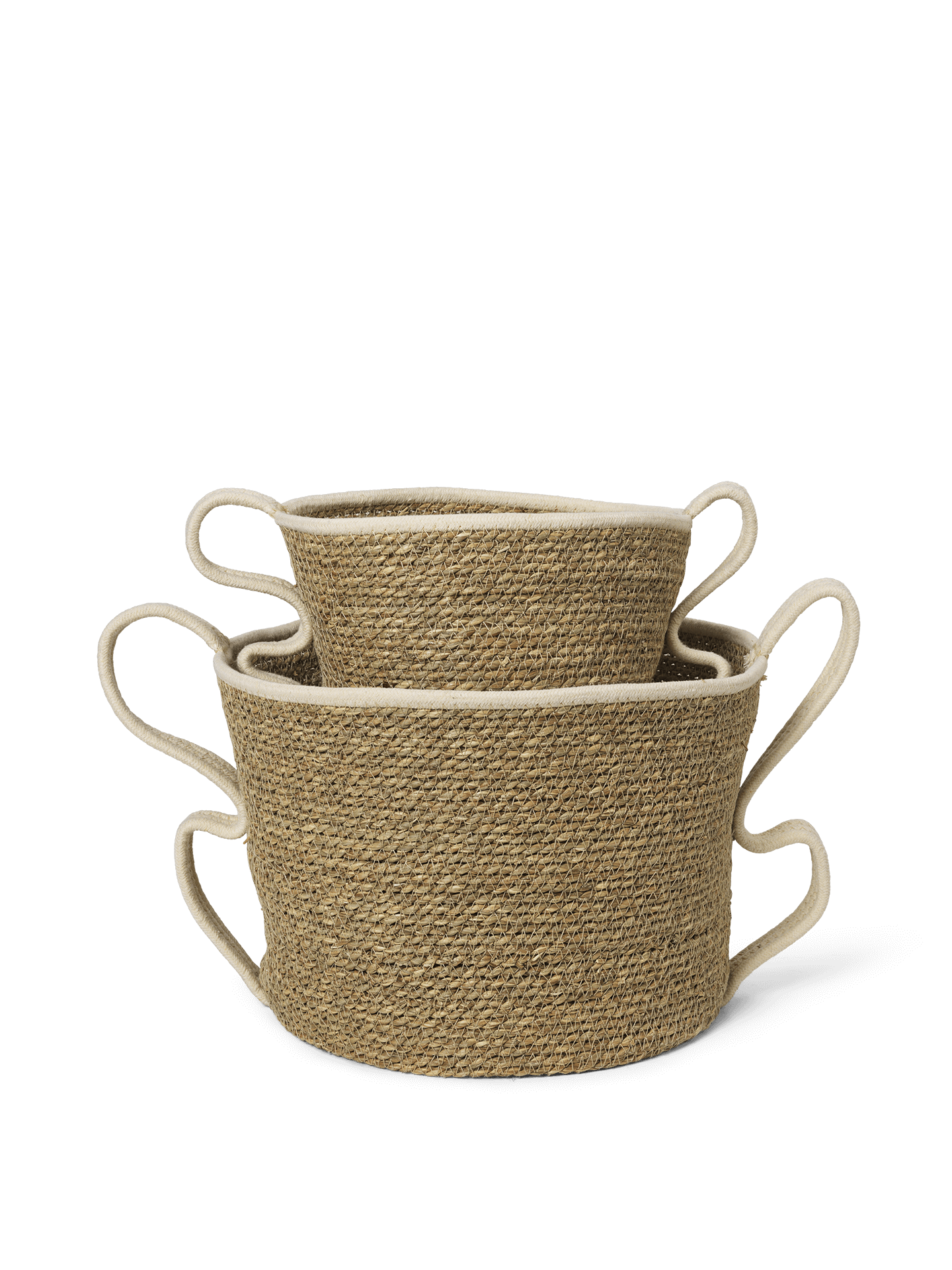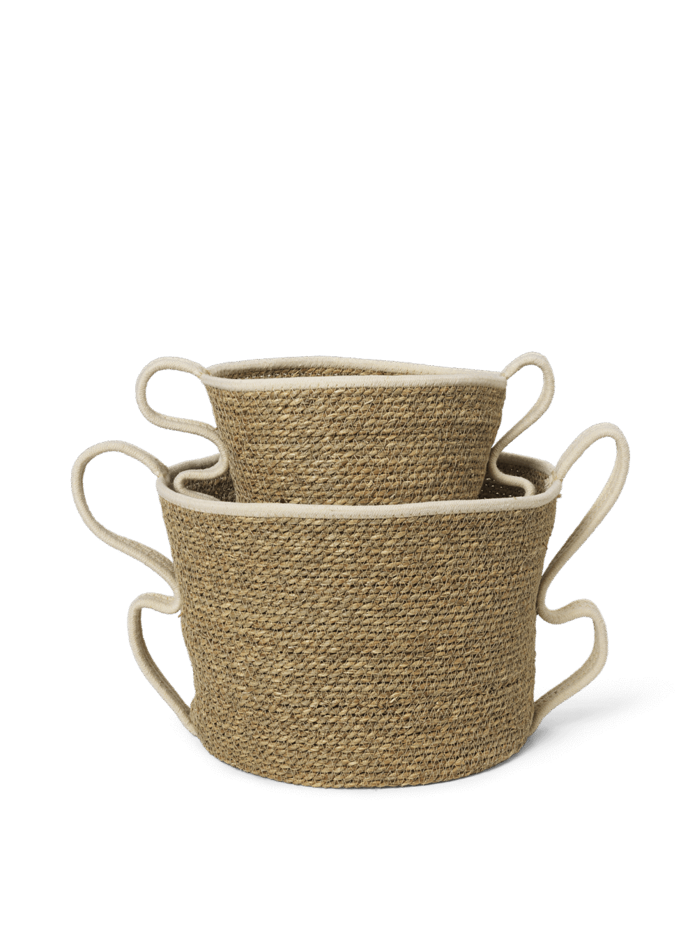 The kid’s room is often filled with colourful toys and plush teddies that need clearing away at the end of the day. Made from a tactile mix of woven seagrass and cotton rope and featuring distinctive. wavy handles in a contrasting colour. the Verso Baskets present the ideal solution for adding a both playful. decorative and practical storage solution to your little one’s space.